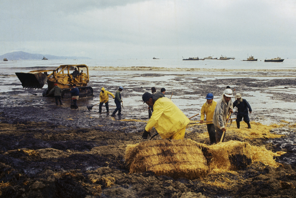 Over 3,000 tons of straw were spread across the beaches to absorb the oil in an attempt to revert the damage seeping out from Union Oil’s platform.