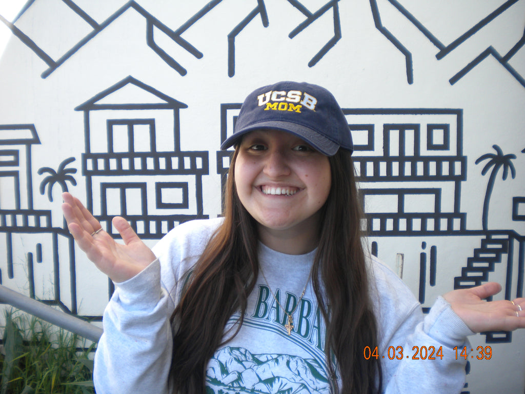 Melany wearing the UCSB Mom Ball Cap